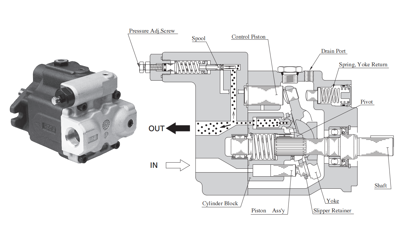Compared to the AR Series Variable Displacement Piston Pumps, this series is reduced by 40 % both in mass and volume, realizing a greatly lightweight and compact design.